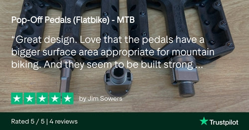 - Patented Flatbike Pinch System with two latches per pedal for extra reliability